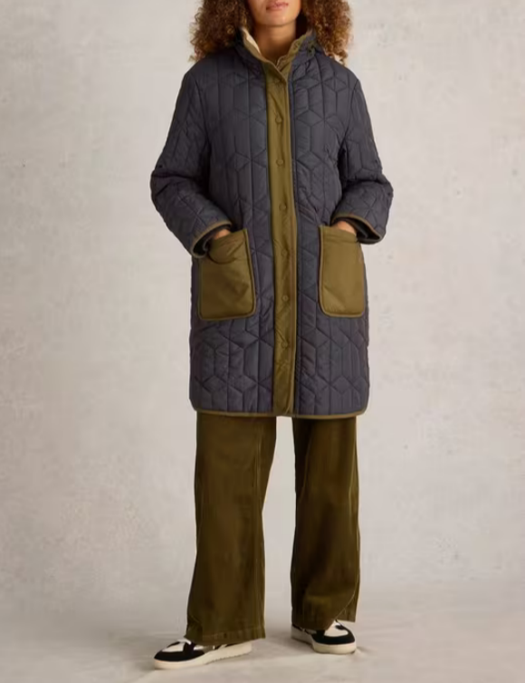 High Neck Lined Quilted Coat